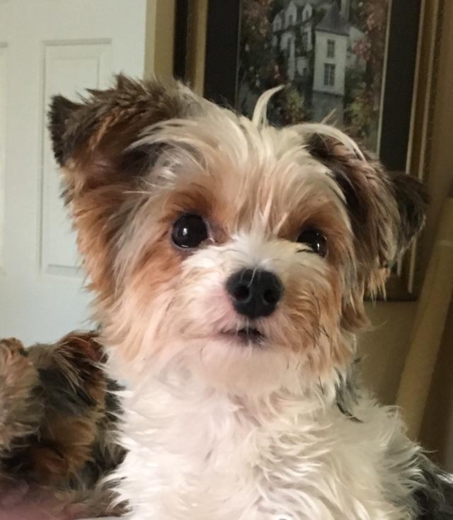 Sallie is a Parti Yorkie with lots of personality. She is independent and intrepid. She is both friendly and submissive to the other dogs at Little Dogs Farm. She is an endearing dog.