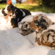Our puppies include red merle, blue merle, red, black tri-color, and red tri-color. Colors will vary depending on the parent dogs.