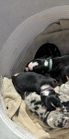 Puppy’s had their first vet visit today. They have their dew claws done and their tails docked. Poor little babies are recovering well with momma and don’t seem to be having any difficulties. 💕
