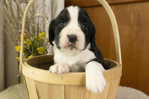Our puppies include black white and tan, liver white and tan, liver and white, and black and white. Colors will vary depending on the parent dogs.