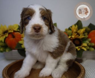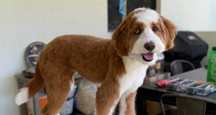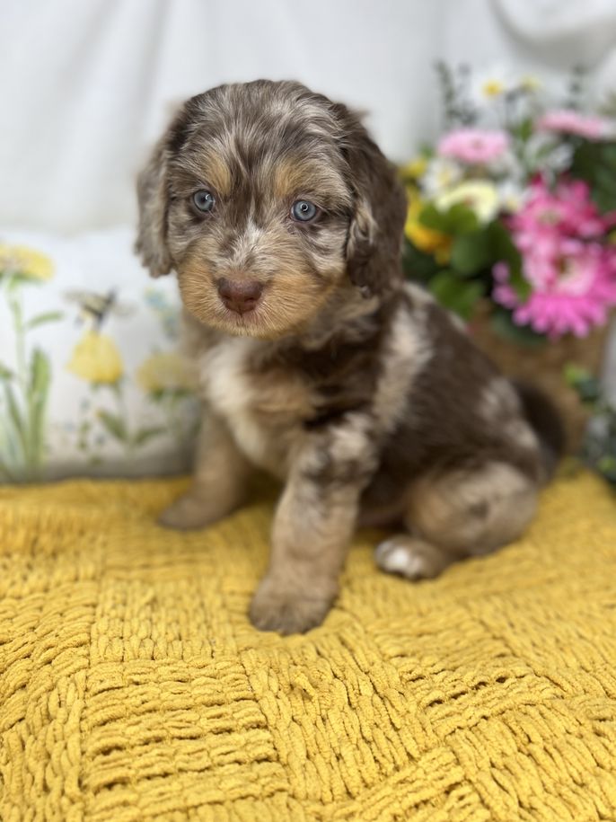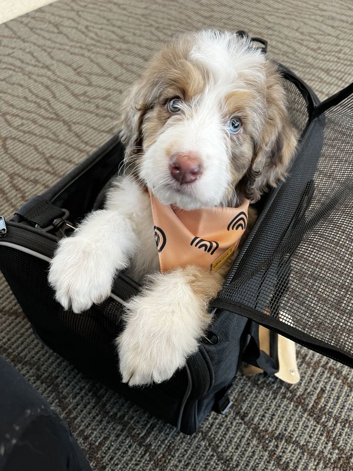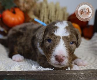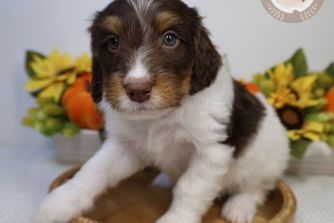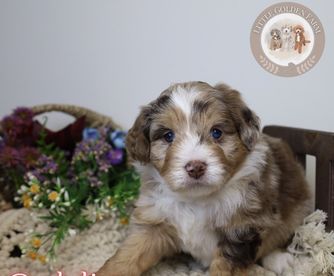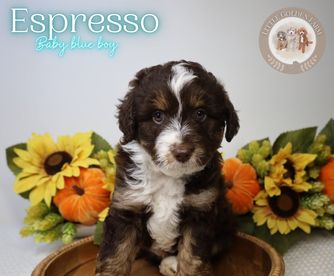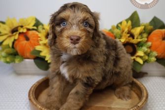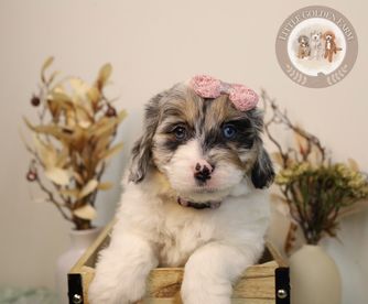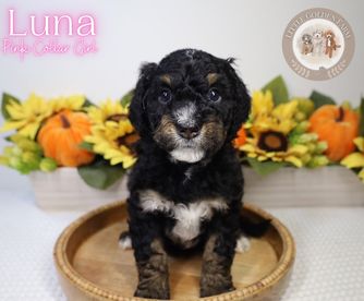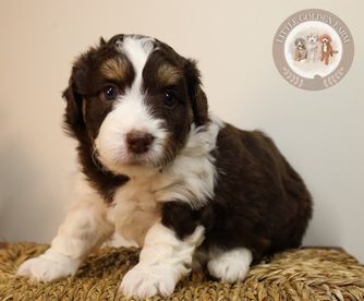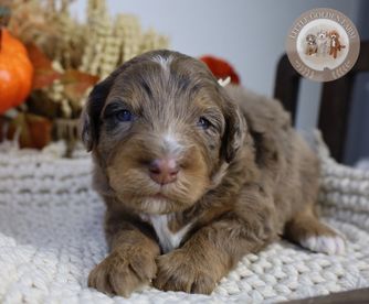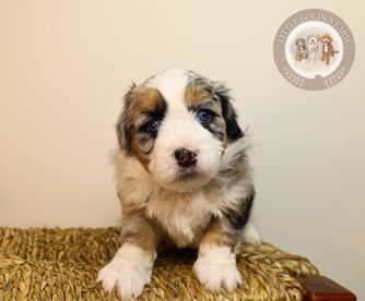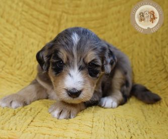 Our Bernedoodle puppies include brown, red, tri-color, phantom, blue merle, and merle. Aussiedoodle puppies include blue merle, red merle, black phantom, black and white, black tri-color, red phantom, and red tri-color. Colors will vary depending on the parent dogs.