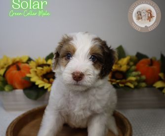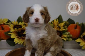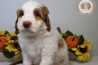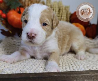 Our Bernedoodle puppies include mini and medium sizes. Aussiedoodle puppies include toy and mini sizes. Sizes will vary depending on the parent dogs.