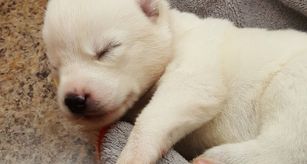 Our puppies include red and white, gray and white, agouti and white, and white. Colors will vary depending on the parent dogs.