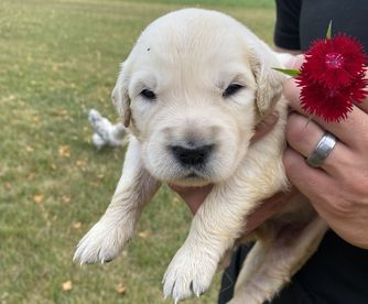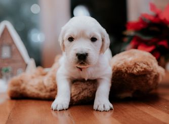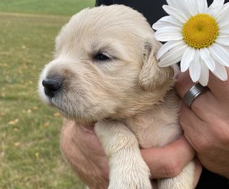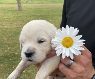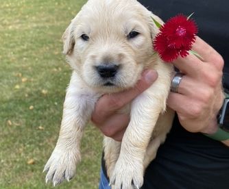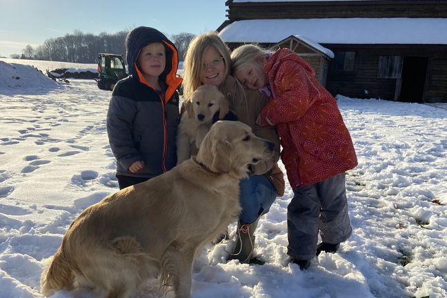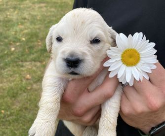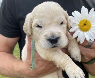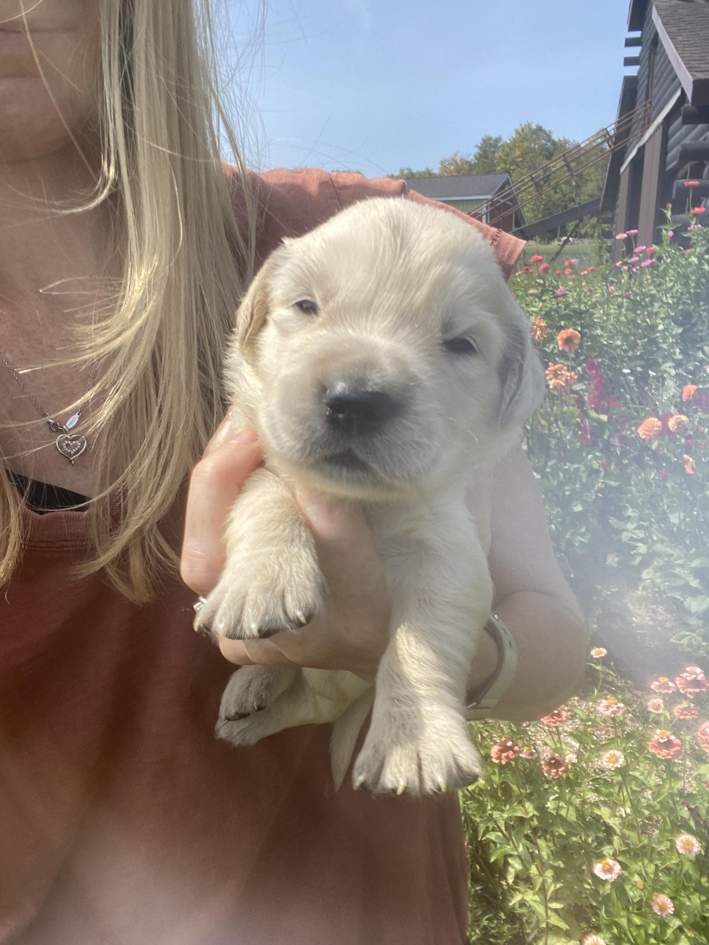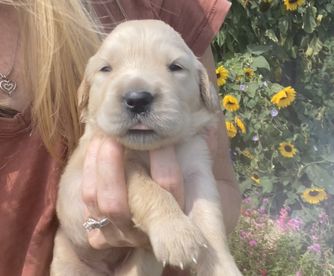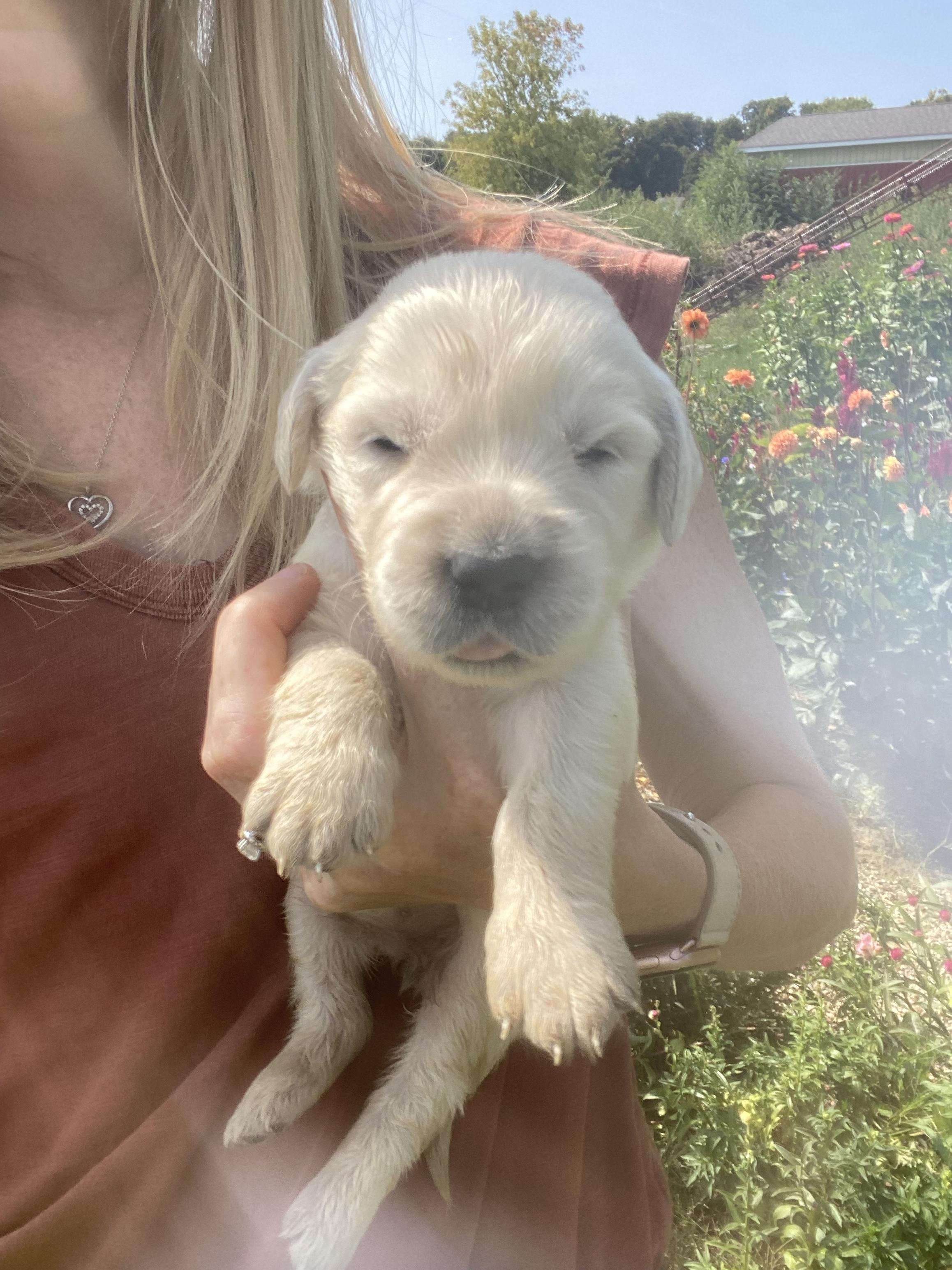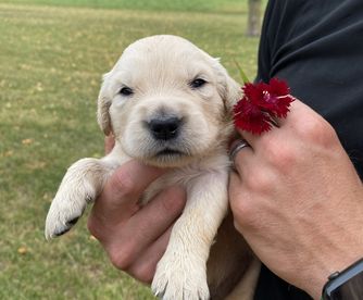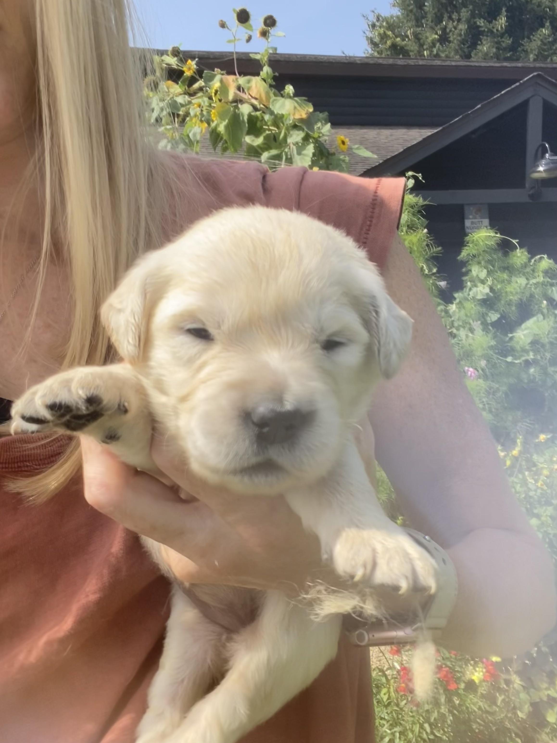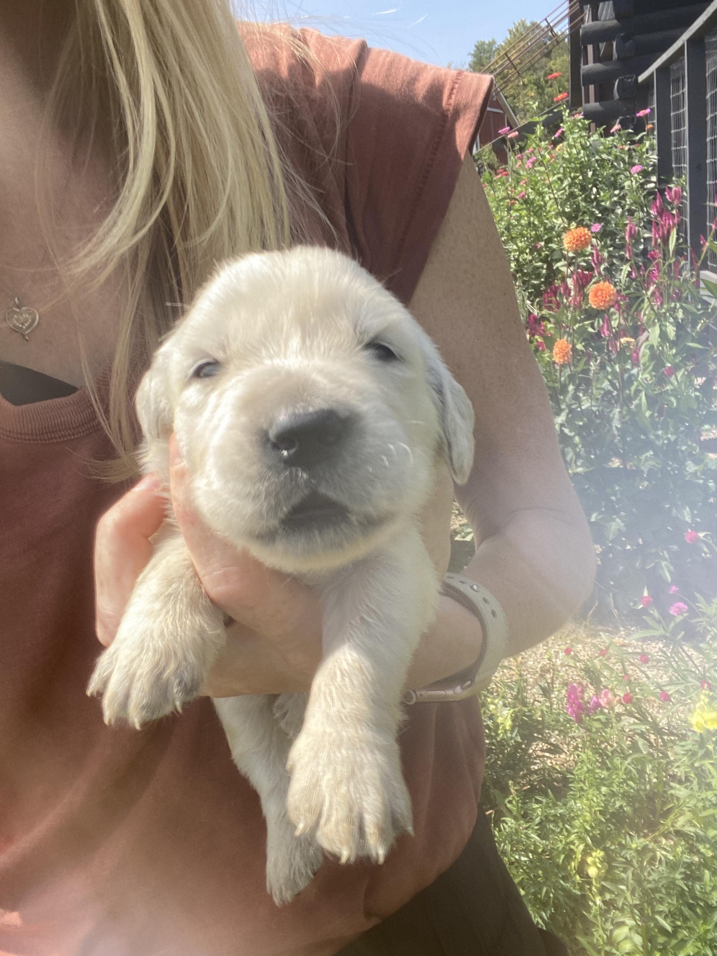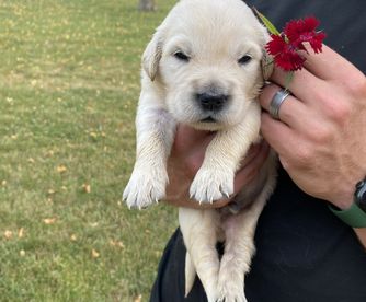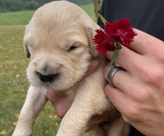 Maggie is the best. We love her so so much! She LOVES people, is eager to please, is not good at playing catch, and has the sweetest temperament. She loves our young children and is gentle with my elderly grandparents. She is certified for eyes, heart, hips, elbows and has clear genetics.