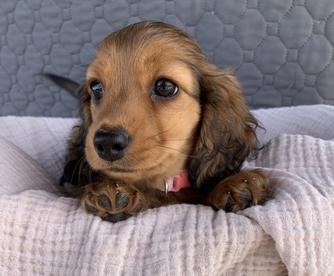Shortly after I met my husband, I found out his mother raised miniature dachshunds. It wasn't long after that I began helping her care for her sweet fur babies. One of my favorite parts was getting to help socialize the puppies! Fast forward to today - I have my own dachshunds and thoroughly enjoy helping families find their own furry companions!