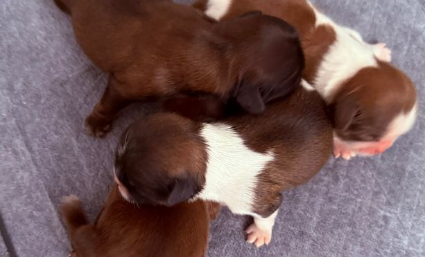 We treat each pup as if it were part of our “pack”. The whelping pin is beside our bed so I am with them constantly weeks 1-3. Week 4 they move to a larger pin where they receive devoted attention, neuro-stimulation, interaction with other dogs, and rabbits. We begin potty and basic obedience training. We limit ourselves to 1 litter at a time ensuring our dedication to each furbaby.