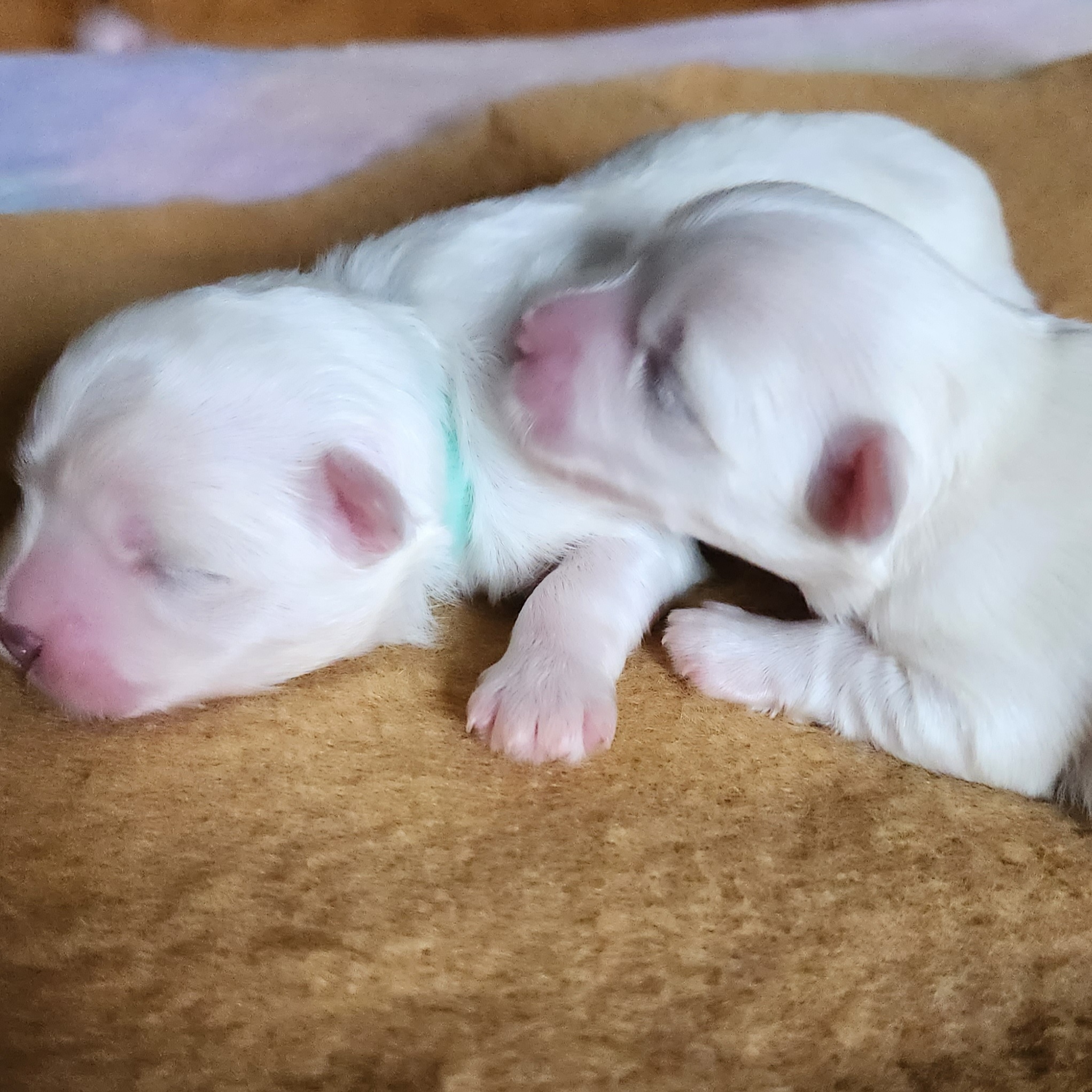 Our puppies include white and white and lemon. Colors will vary depending on the parent dogs.
