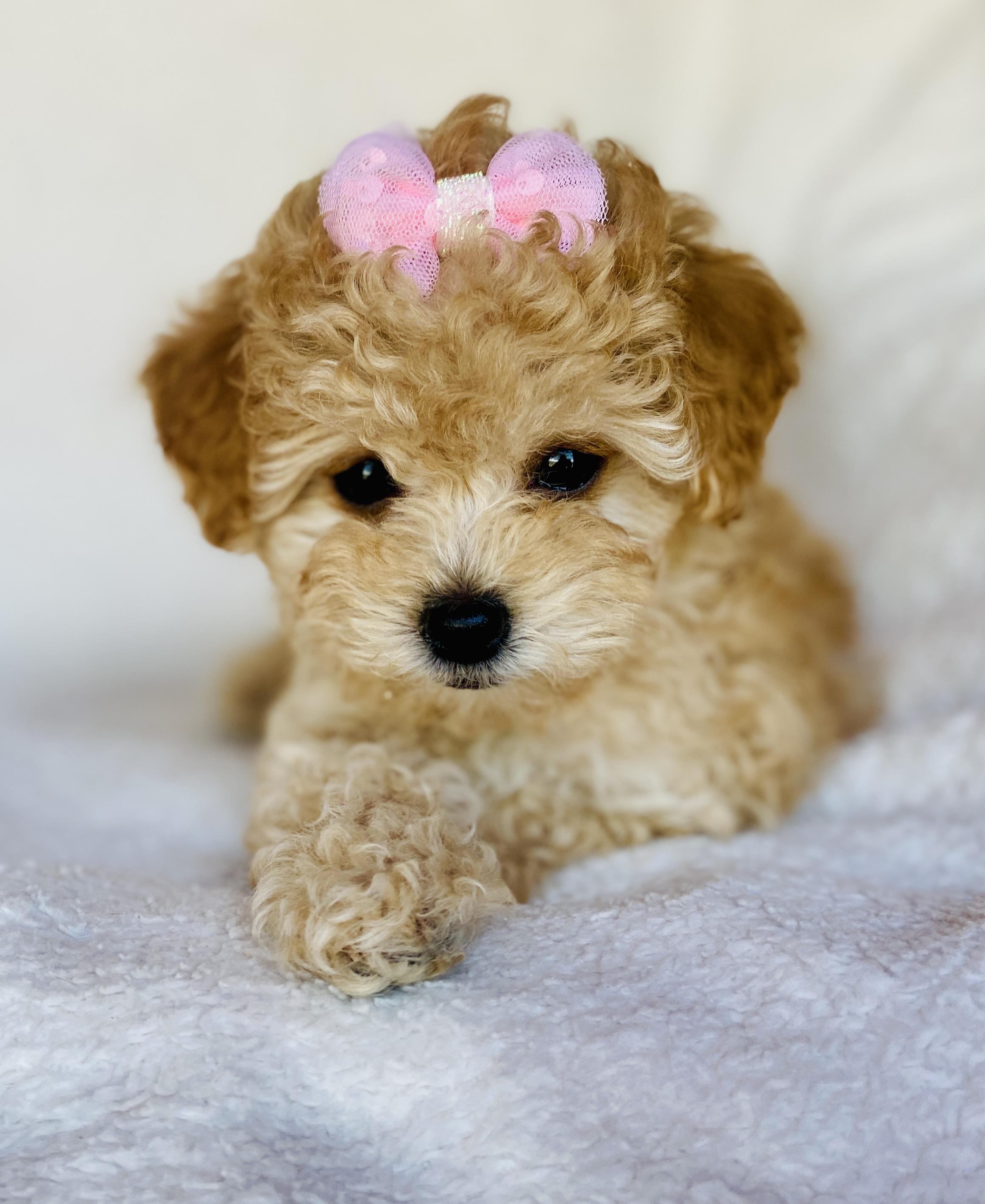 Growing up, my mum bred AKC Goldens. I grew up raising pups. When my last Golden died at the good old age of 16, I decided I wanted a non-shedding lap dog (or 3 of them)! I'VE FALLEN IN LOVE WITH MALTIPOOS! I didn't know I needed a constant cuddle companion. When searching for a Maltipoo I ran into many scammers. I decided I would bring happy healthy Maltipoos to the people who need them too.