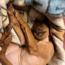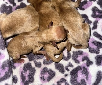 Our puppies include chocolate and rust, red, and black and tan. Colors will vary depending on the parent dogs.
