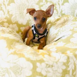 Percy is a male Miniature Pinscher. Carefully selected as a great representative of his breed, Heather decided to make him part of their program. Heather has passed Good Dog’s screening process, which involved a review of their breeding practices, environment, and the mental and physical health of their dogs.