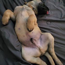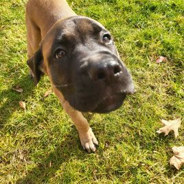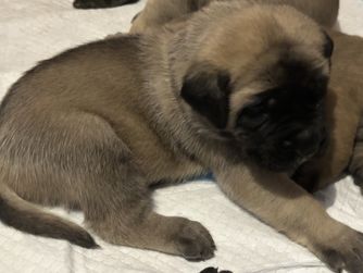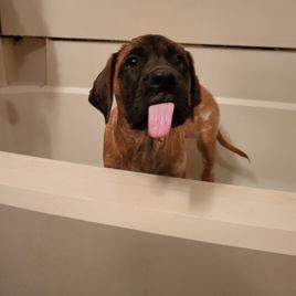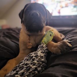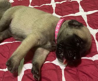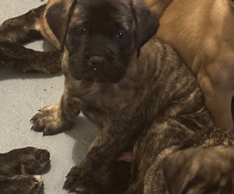 Bruno is the perfect puppy! He's already potty trained and has been doing wonderful with obedience training too, he's so smart! He's exactly what we wanted in a mastiff and we're so glad we chose him from Little Mountain Mastiffs :)