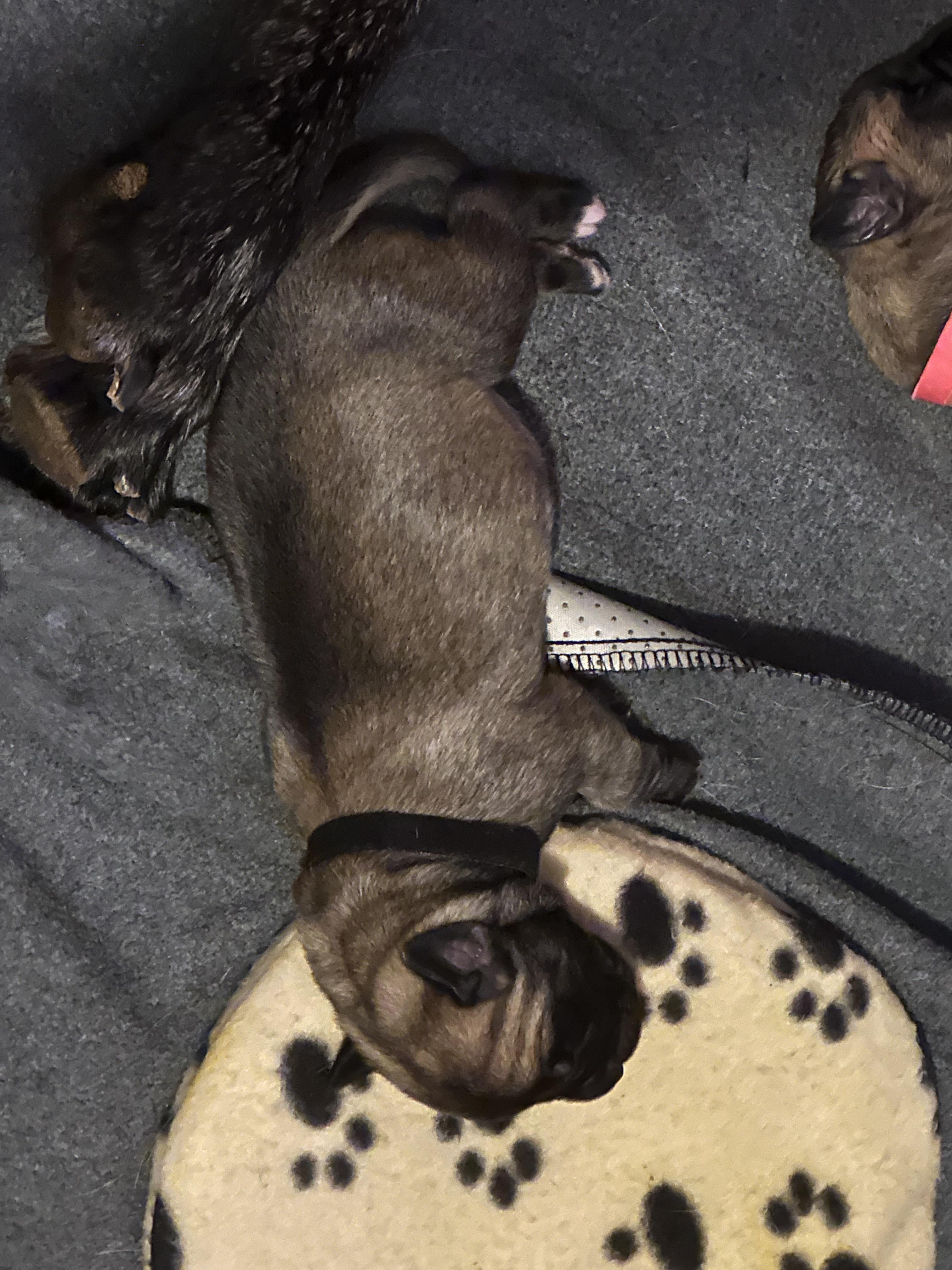 Our puppies include apricot, fawn, and brindle. Colors will vary depending on the parent dogs.
