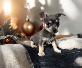 Our Chihuahua puppies include black, chocolate, black sabled fawn, blue, blue fawn, chocolate sabled fawn, blue and tan, blue merle, gold and white, chocolate and white, chocolate and tan, blue and white, black and white, black and tan, and black and silver. Dachshund puppies include sable, piebald, red, wheaten, black and tan, and dapple. Colors will vary depending on the parent dogs.