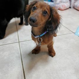 Briar is a female Dachshund about 5 years old. Carefully selected as a great representative of her breed, Isabelle decided to make her part of their program. Isabelle has passed Good Dog’s screening process, which involved a review of their breeding practices, environment, and the mental and physical health of their dogs.