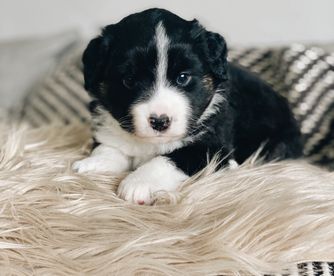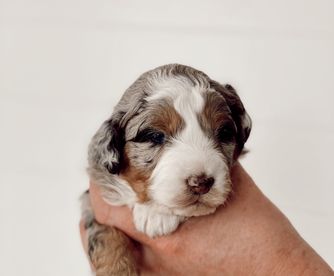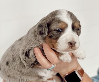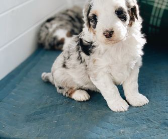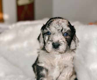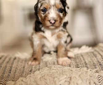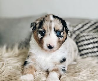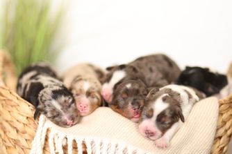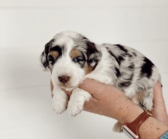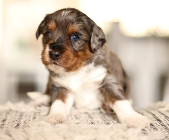 Our Aussiedoodle puppies include blue merle, red merle, black tri-color, and red tri-color. Colors will vary depending on the parent dogs.