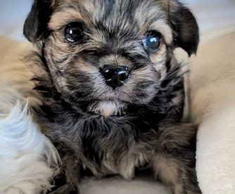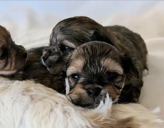 Our Yorkshire Terrier puppies include chocolate, tan and white, chocolate and tan, parti, and black and gold. Shih Tzu puppies include black, liver, liver and white, gold and white, brindle and white, black gold and white, black and white, and brindle. Yorkipoo puppies are black. Shorkie puppies include black white and silver, liver and white, liver, black and white, brindle and white, gold, brindle, black and tan, and black. Colors will vary depending on the parent dogs.