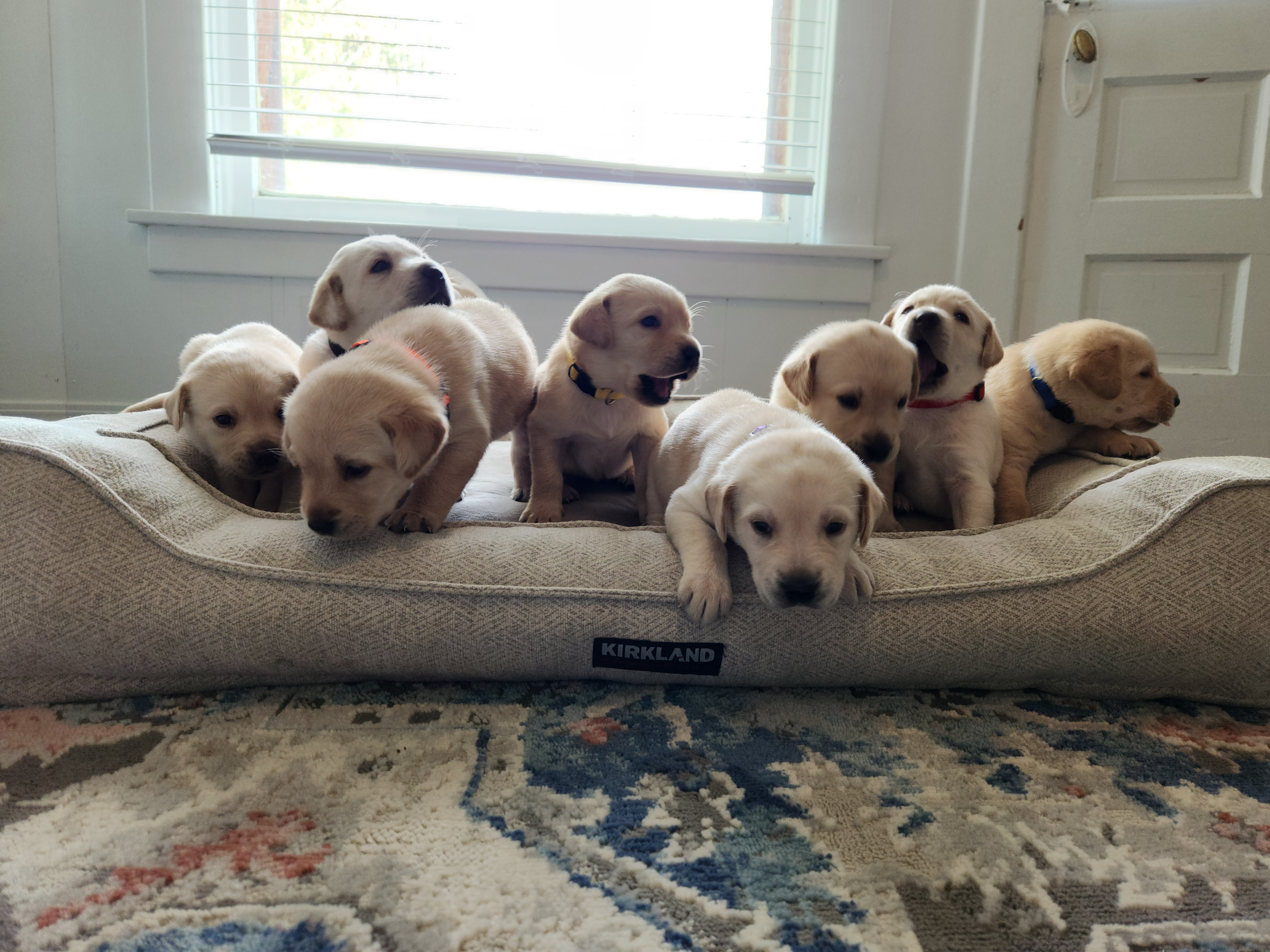 Our puppies are yellow. Colors will vary depending on the parent dogs.