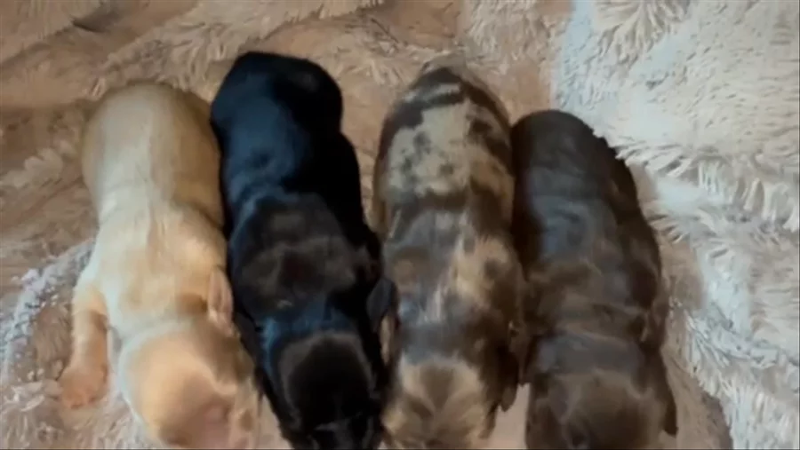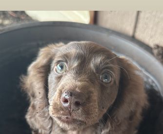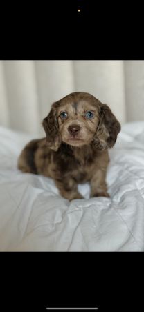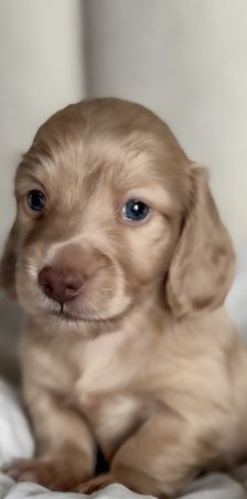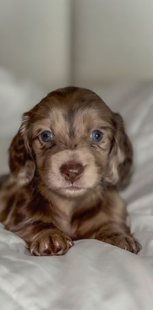 Our Cockapoo puppies include merle, brown and white, brown white and tan, brown roan and tan, brown, red, red and white, sable and white, black and tan, cream, blue roan and tan, brown roan, and blue roan. Cavapoo puppies include blenheim, white, cream, red, and apricot. Dachshund puppies include cream, chocolate, fawn (isabella), wheaten, fawn (isabella) and cream, and dapple. Colors will vary depending on the parent dogs.