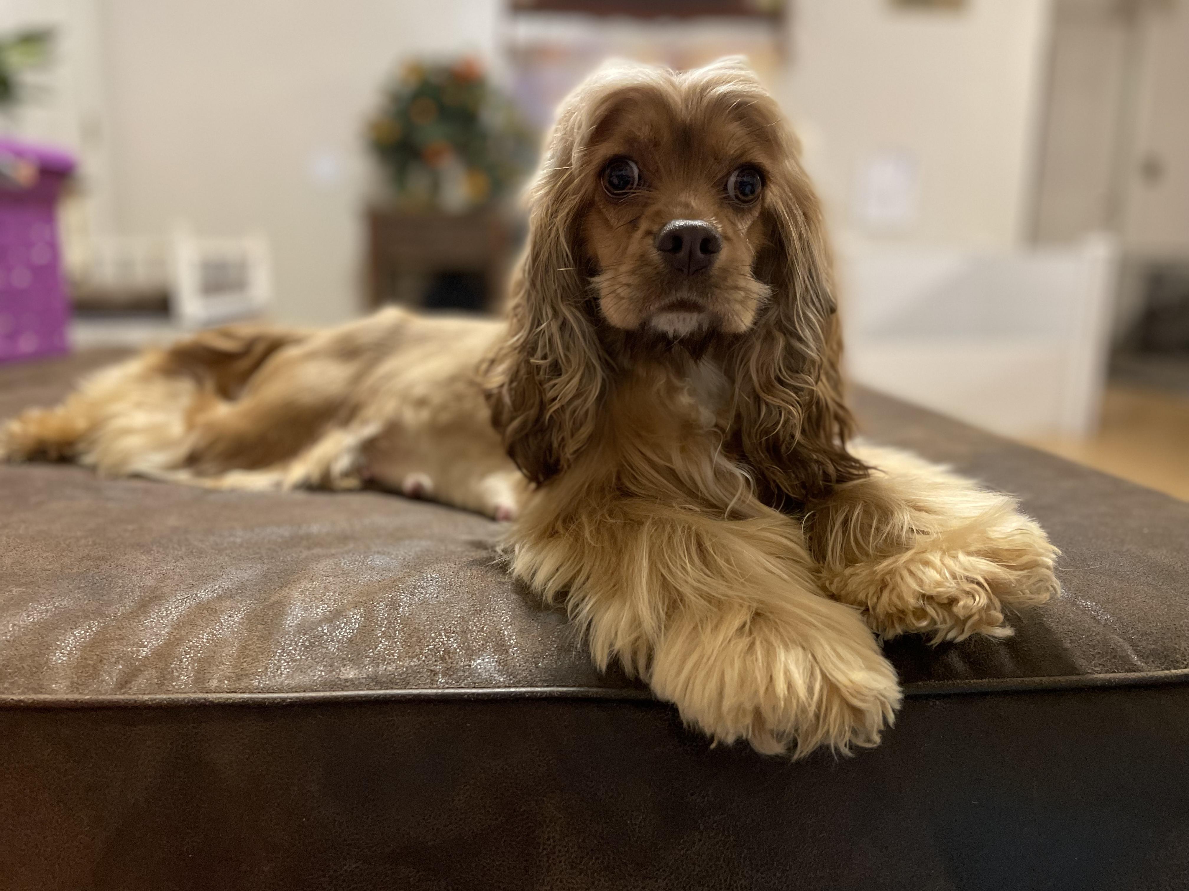 Annie is a female Cocker Spaniel. Carefully selected as a great representative of her breed, Rene decided to make her part of their program. Rene has passed Good Dog’s screening process, which involved a review of their breeding practices, environment, and the mental and physical health of their dogs.
