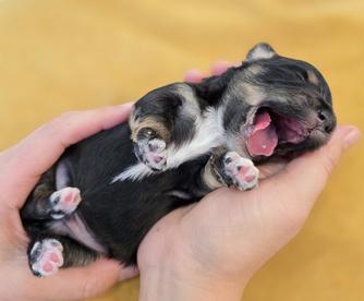 Our puppies are hand-raised in our home, with just one breeding pair, so each litter gets our full attention.