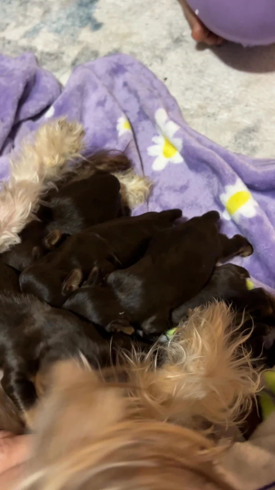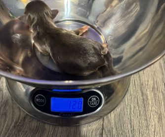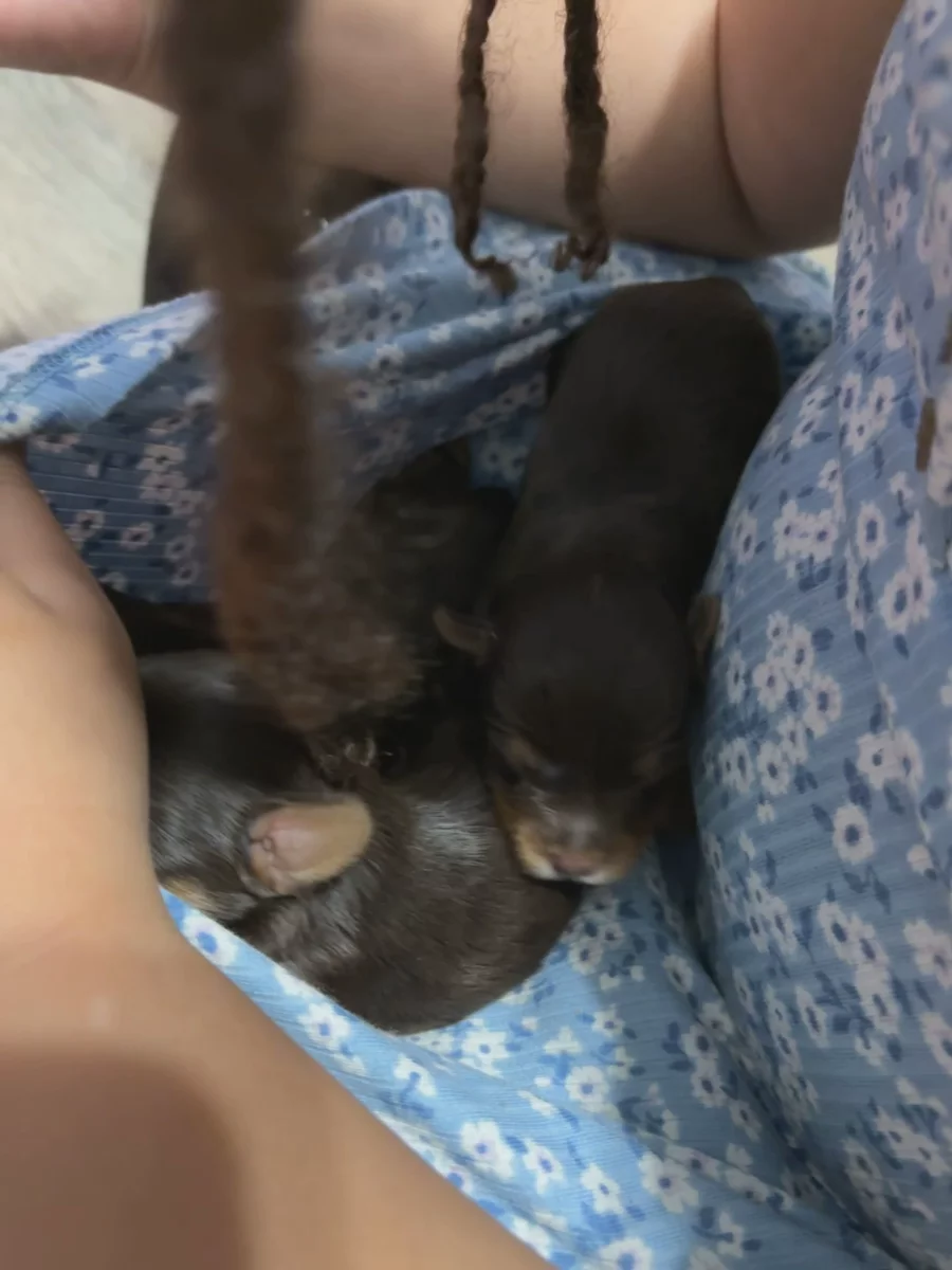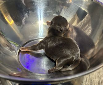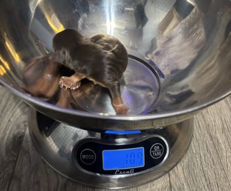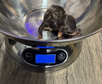 Our puppies include chocolate and tan and black and tan. Colors will vary depending on the parent dogs.