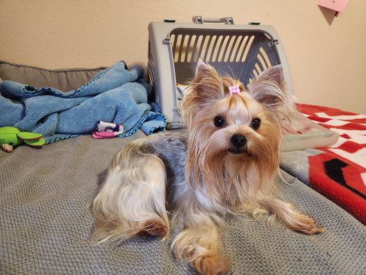 Clover is a female Yorkshire Terrier. Carefully selected as a great representative of her breed, Carol decided to make her part of their program. Carol has passed Good Dog’s screening process, which involved a review of their breeding practices, environment, and the mental and physical health of their dogs.
