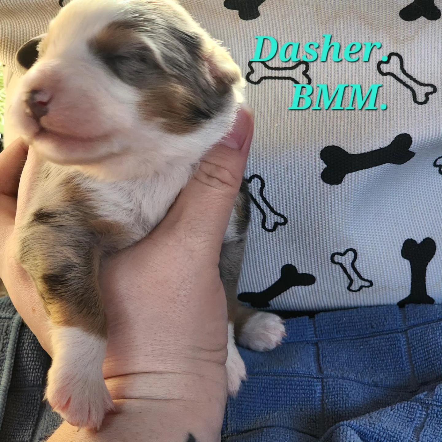 Our puppies include red merle, blue merle, black tri-color, and red tri-color. Colors will vary depending on the parent dogs.