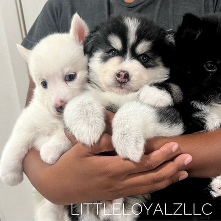 I'm Merissa J., the breeder behind LittleLoyalzLLC located in Riverside, CA. Pomskies are our passion, and we can't imagine spending our lives without them. We are dedicated towards achieving excellence and healthy family pets, and we are always working to further our education so that we can continue to improve our breeding program. We are under the incredible mentorship of “RunAmokFarm” with ongoing education in the natural rearing of our beloved canine family with healthcare at the forefront of our program.
