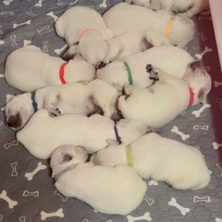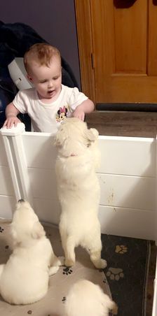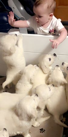 We raise our puppies as part of a family. They live with us, play with us and sleep with us.