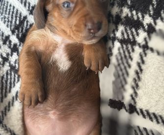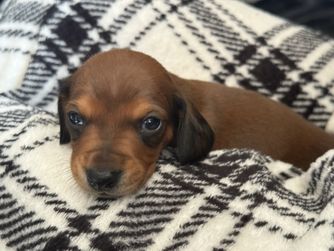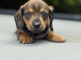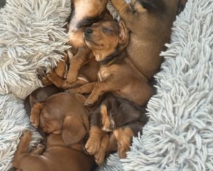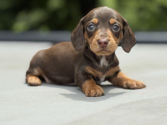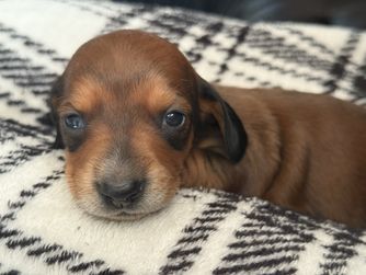 Dachshund puppies have smooth coats. Coat types may vary depending on the parent dogs.