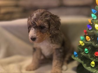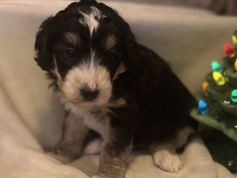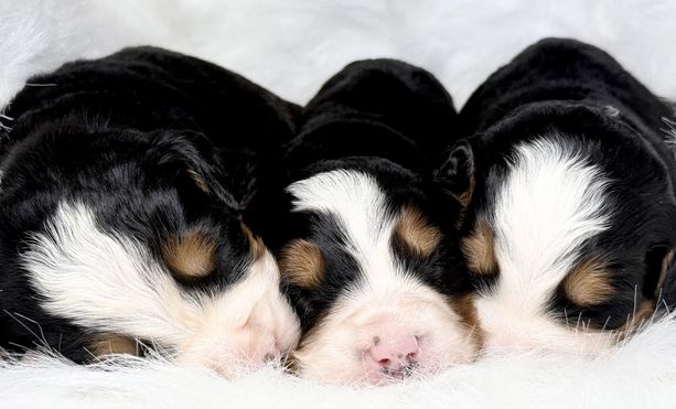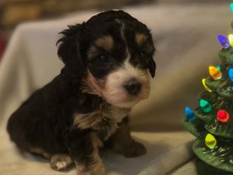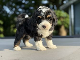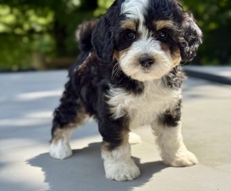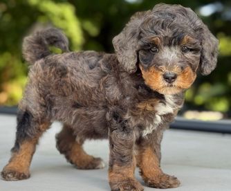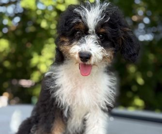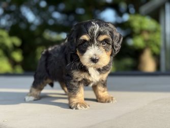 Our Bernedoodle puppies include sable, black, black and white, tri-color, and phantom. Bernese Mountain Dog puppies are black tan and white. Dachshund puppies include sable, red, chocolate and tan, and black and tan. Goldendoodle puppies include cream, apricot, chocolate, and parti. Colors will vary depending on the parent dogs.