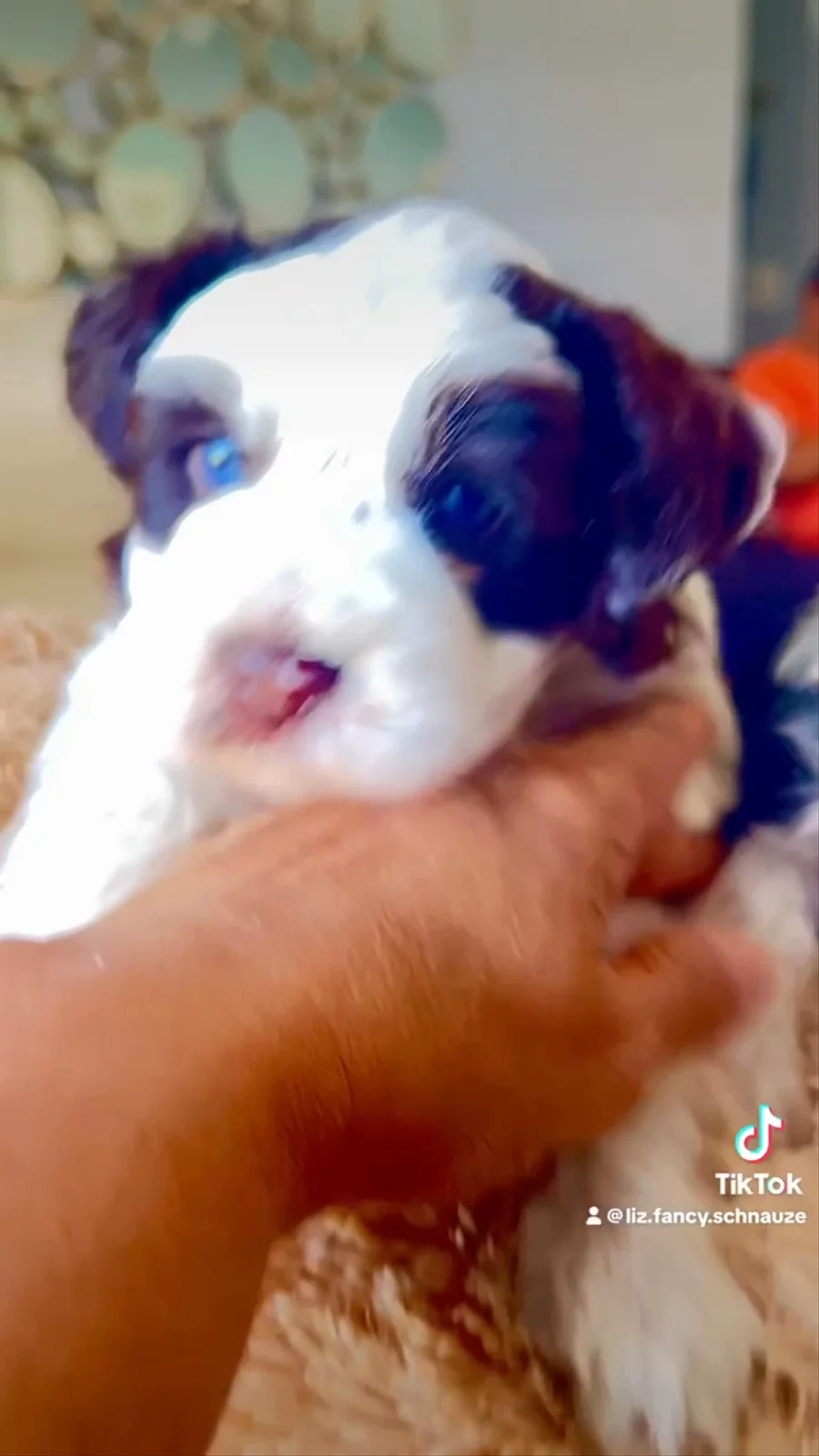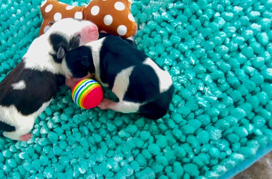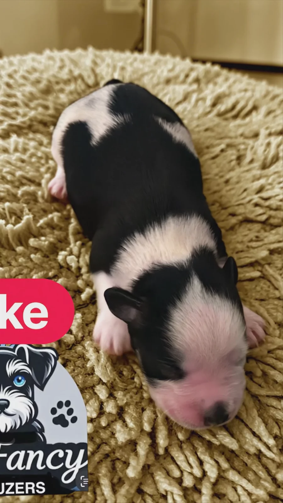 This is little Duke he is a black & white Parti boy his sweet little face looks like snoopy black ears and a sweet black little nose🥰👍