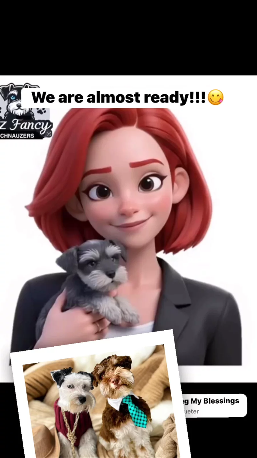 I'm Elizabeth B., the breeder behind LIZ FANCY SCHNAUZERS located in Deltona, FL. I'm Elizabeth Beltran, from Central Florida, and I'm passionate about this breed. They're intelligent, obedient, loyal, and loving, making them excellent with children & seniors. This sparked my decision to breed them, with a vision of creating dogs that loves us.