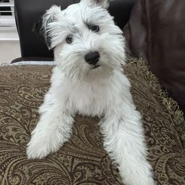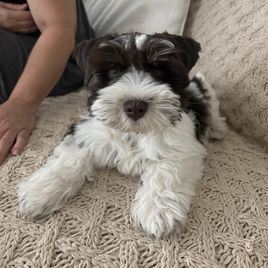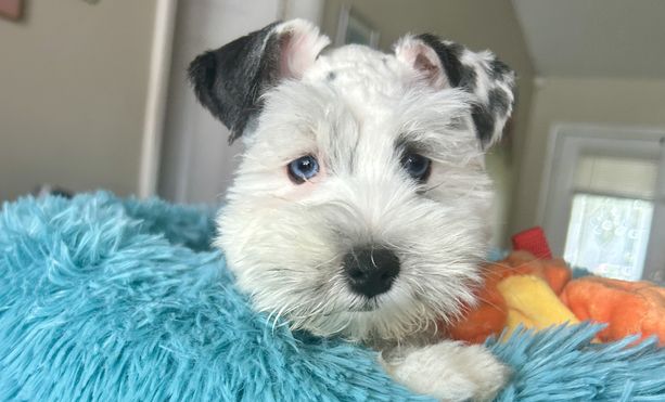 I recently bought a beautiful Schnauzer puppy with striking blue eyes and amazing grooming from Elizabeth, and I couldn't be happier with the entire experience. From the moment I first inquired, she was incredibly welcoming and caring, answering all of my questions with great patience and attention to detail.
