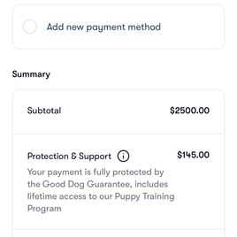 Puppy prices include a $500 non-refundable deposit and between $2,700 - $3,200 final payment, before taxes & fees.