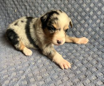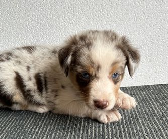 Our Australian Shepherd puppies include red & white, black & white, red merle, blue merle, red, black tri-color, and red tri-color. Colors will vary depending on the parent dogs.