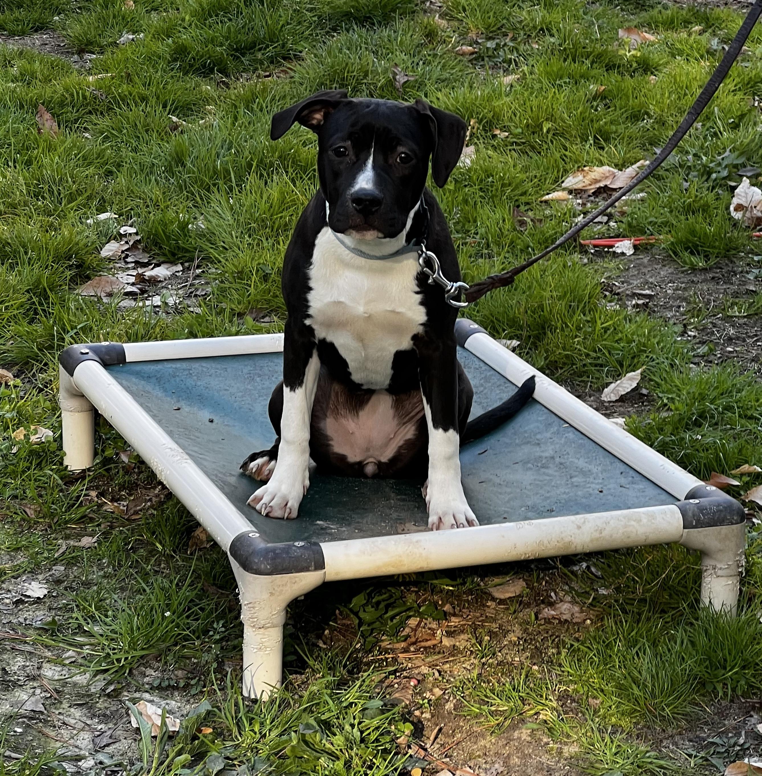 Colt is a male American Staffordshire Terrier. Carefully selected as a great representative of his breed, Theresa decided to make him part of their program. Theresa has passed Good Dog’s screening process, which involved a review of their breeding practices, environment, and the mental and physical health of their dogs.