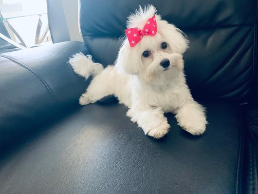 Dolce is a female Maltese. Carefully selected as a great representative of her breed, Lizeth decided to make her part of their program. Lizeth has passed Good Dog’s screening process, which involved a review of their breeding practices, environment, and the mental and physical health of their dogs.