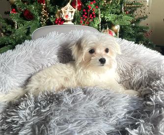Snow is a male Maltese. Carefully selected as a great representative of his breed, Lizeth decided to make him part of their program. Lizeth has passed Good Dog’s screening process, which involved a review of their breeding practices, environment, and the mental and physical health of their dogs.