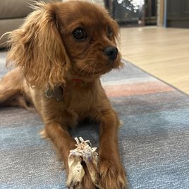 Jones is a male Cavalier King Charles Spaniel. Carefully selected as a great representative of his breed, Victoria decided to make him part of their program. Victoria has passed Good Dog’s screening process, which involved a review of their breeding practices, environment, and the mental and physical health of their dogs.