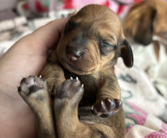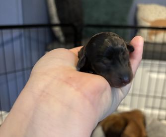 I'm Erin L., the breeder behind Lizzie’s Doxies located in Jacksonville, NC. We do our best to socialize and acclimate each litter so we’re able to offer all-around healthy and well-mannered puppies! The sweet, loyal, and playful disposition of our dogs inspired us to begin responsibly breeding to expand the breed and share them with others. Our pets are our cherished family.