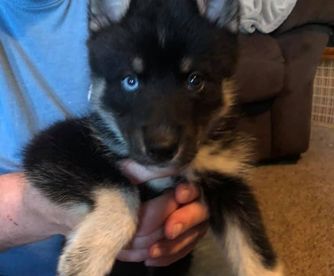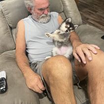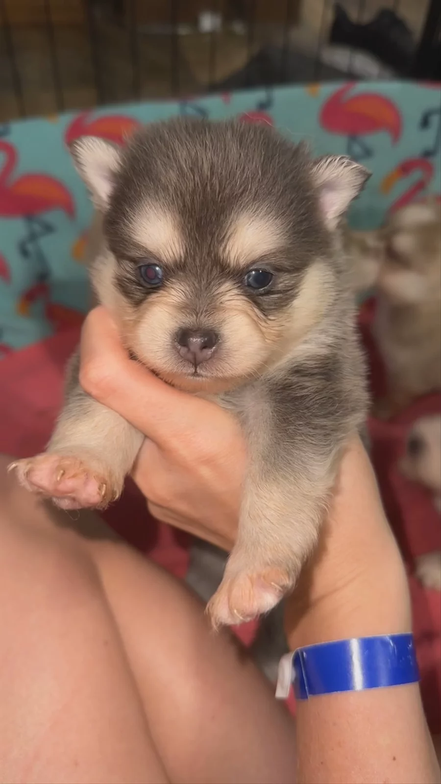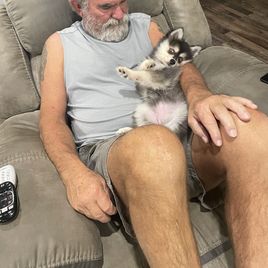 We are on week 4 since we brought our little Dusty-bun (Hyacinth) home and is fitting in well. He’s even grown on our 6-year-old Pomsky Trixie who now spends her days chasing or being chased by her little brother. He has caught on to a routine and will go outside to potty on command, but of course, training is still a work in progress as a 14-week-old pup. He loves to play and cuddle, and loves being passed around our daughter’s friends as they just fawn over him. Thank you to Lexy Ann and John for making the purchase and pick up such an easy process! With us being in another state and hearing about puppy scammers out there, I was put to ease with our frequent communications and the ability to do FaceTime calls. I can tell that Dusty was raised in a loving and caring environment just based on his temperament. He is just the sweetest little love bug and is absolutely adored. ❤️🥰🫶