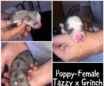 Our puppies include lavender, blue, white, black, black and white, chocolate, merle, and red and white. Colors will vary depending on the parent dogs.