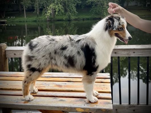 Our puppies include red merle, blue merle, black tri-color, and red tri-color. Colors will vary depending on the parent dogs.