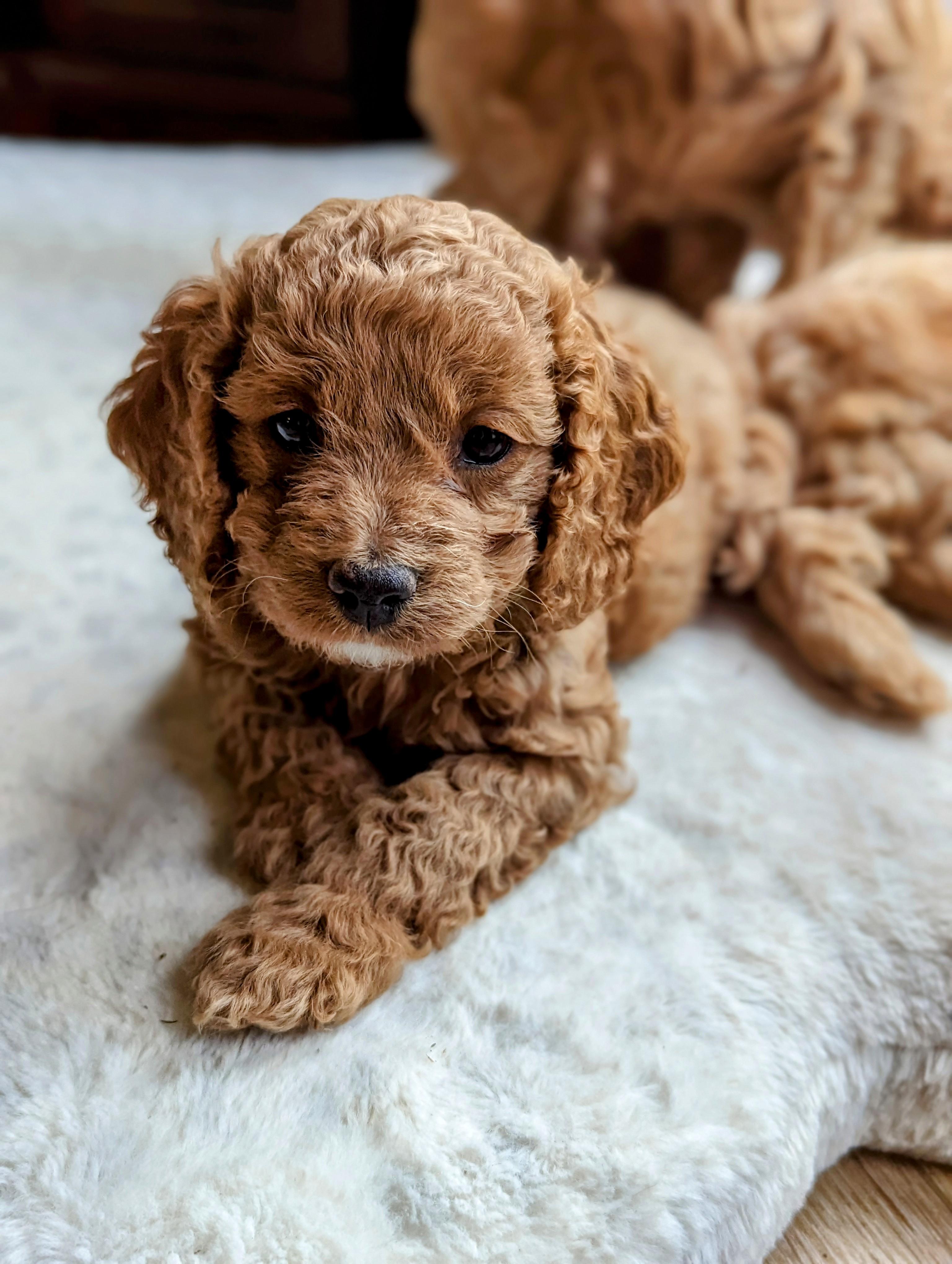 Reese is a female Cockapoo. Carefully selected as a great representative of her breed, Laurel decided to make her part of their program. Laurel has passed Good Dog’s screening process, which involved a review of their breeding practices, environment, and the mental and physical health of their dogs.