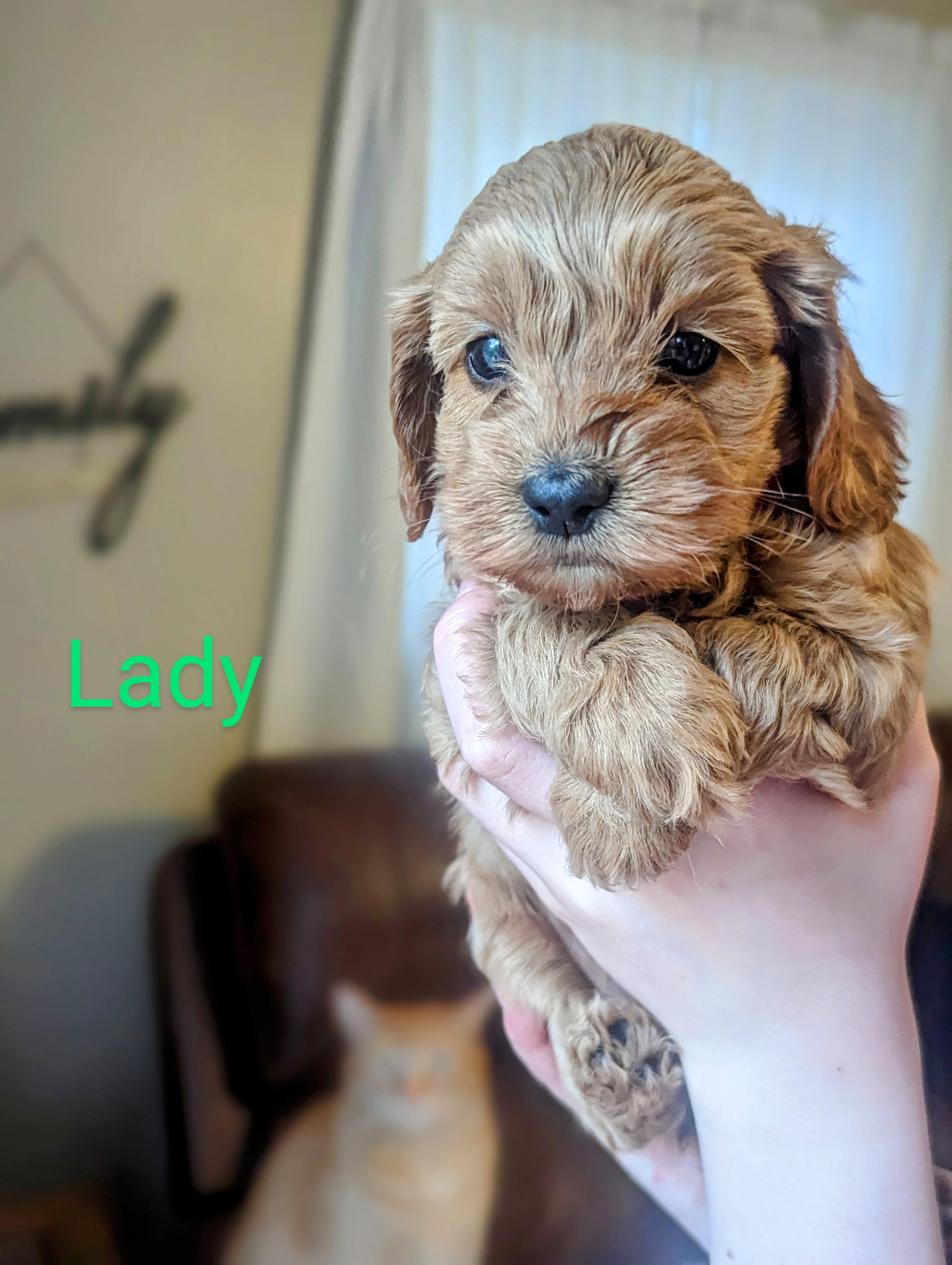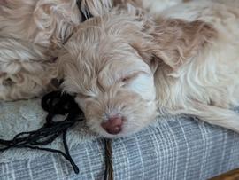 Fun, lovely 2 year old Cockpoo. She has a wonderful temperament. Relaxed and laid back. Loved to play with her two dog sisters along with her best friend, a cat named Gus.