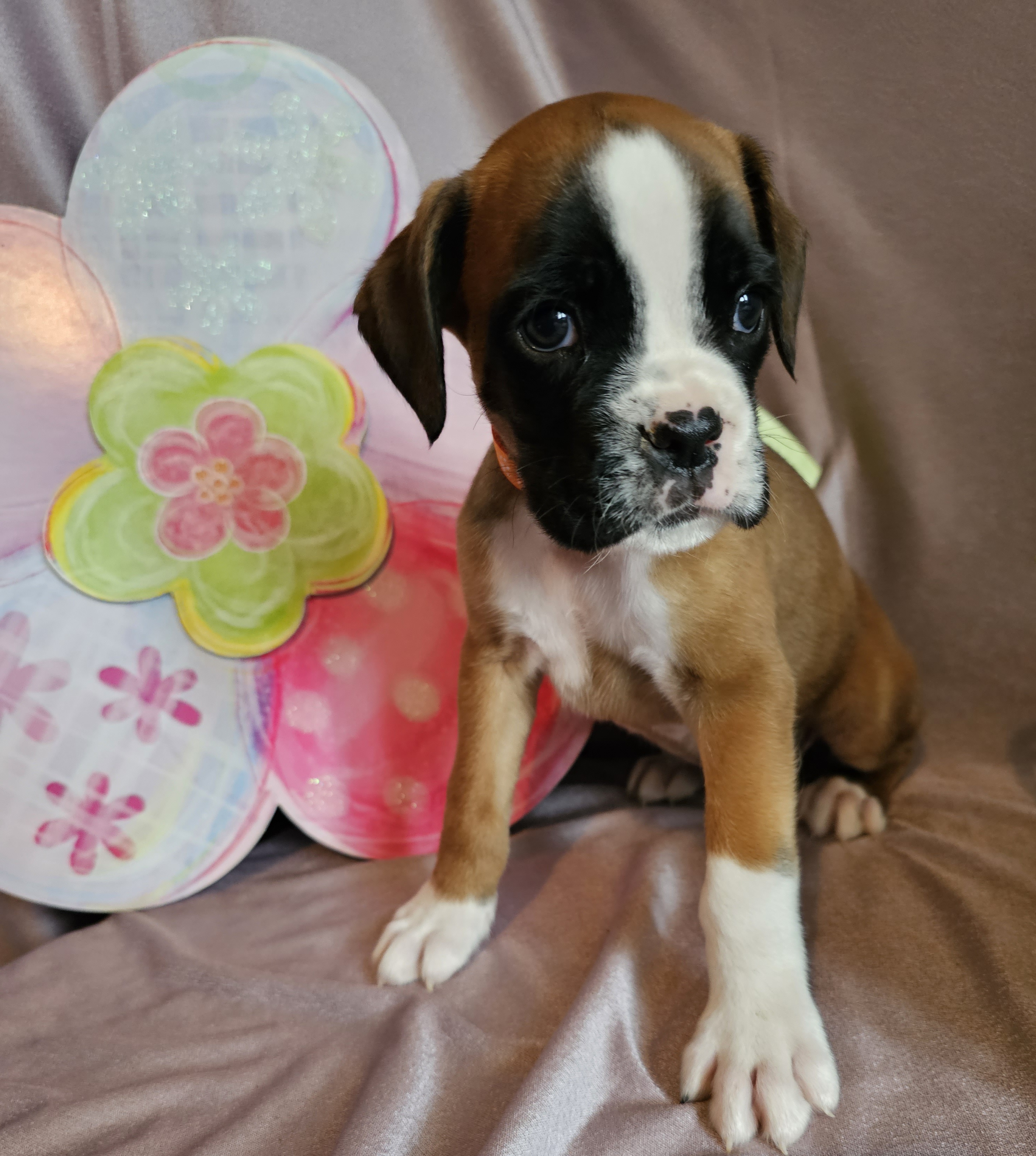 Sara has been great to work w/. She has been very responsive and provided many pics and videos of the boxer puppy (Mille) before we picked her up. Millie has been more than we could have hoped for. She is beyond awesome - she is beautiful, fun, silly, loving, etc. She is the 3rd boxer for our family. She replaced another boxer we recently lost (which was heart breaking for our entire family). Millie has done so much in a short time to make a family complete again. We feel very fortunate to have her.