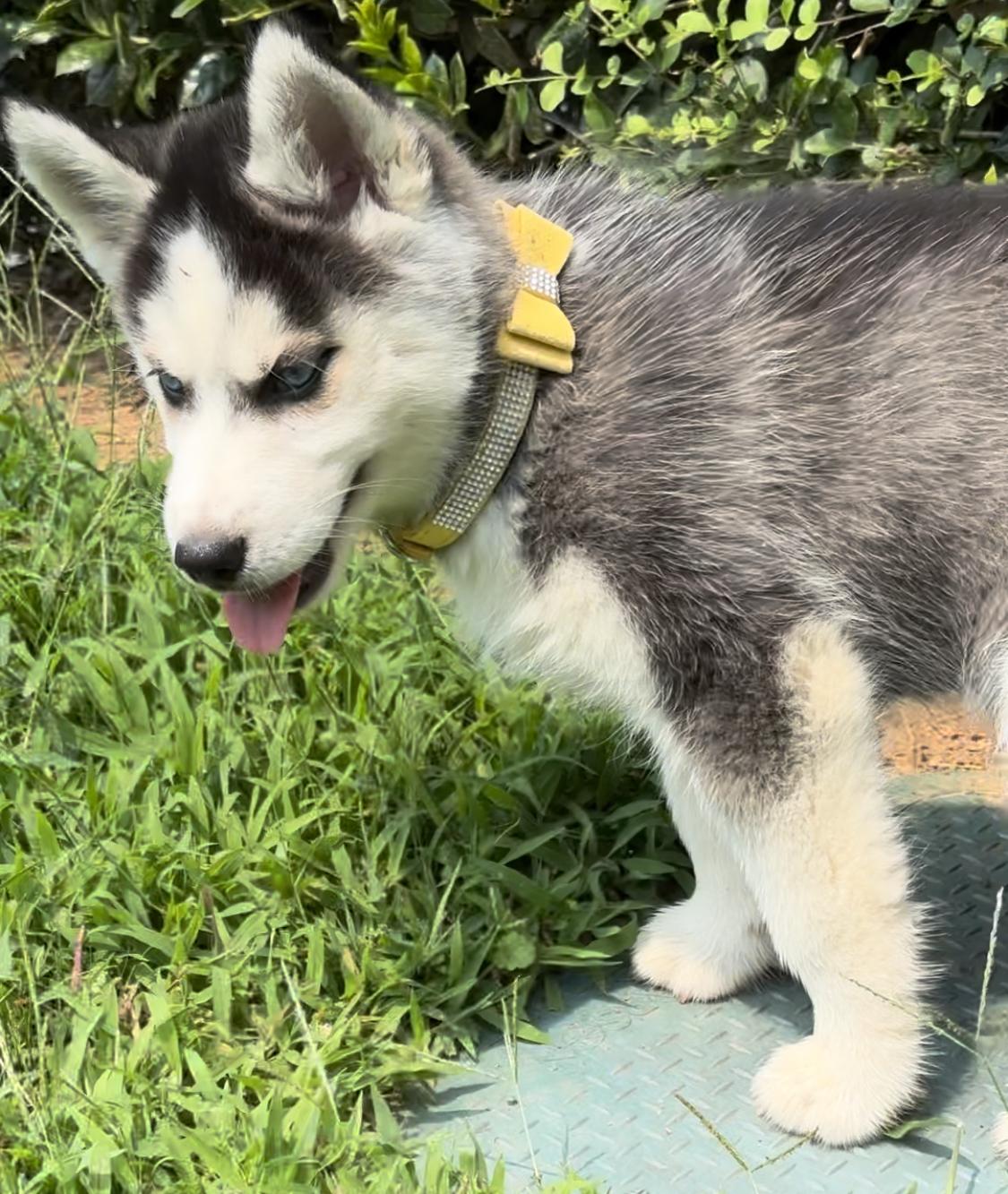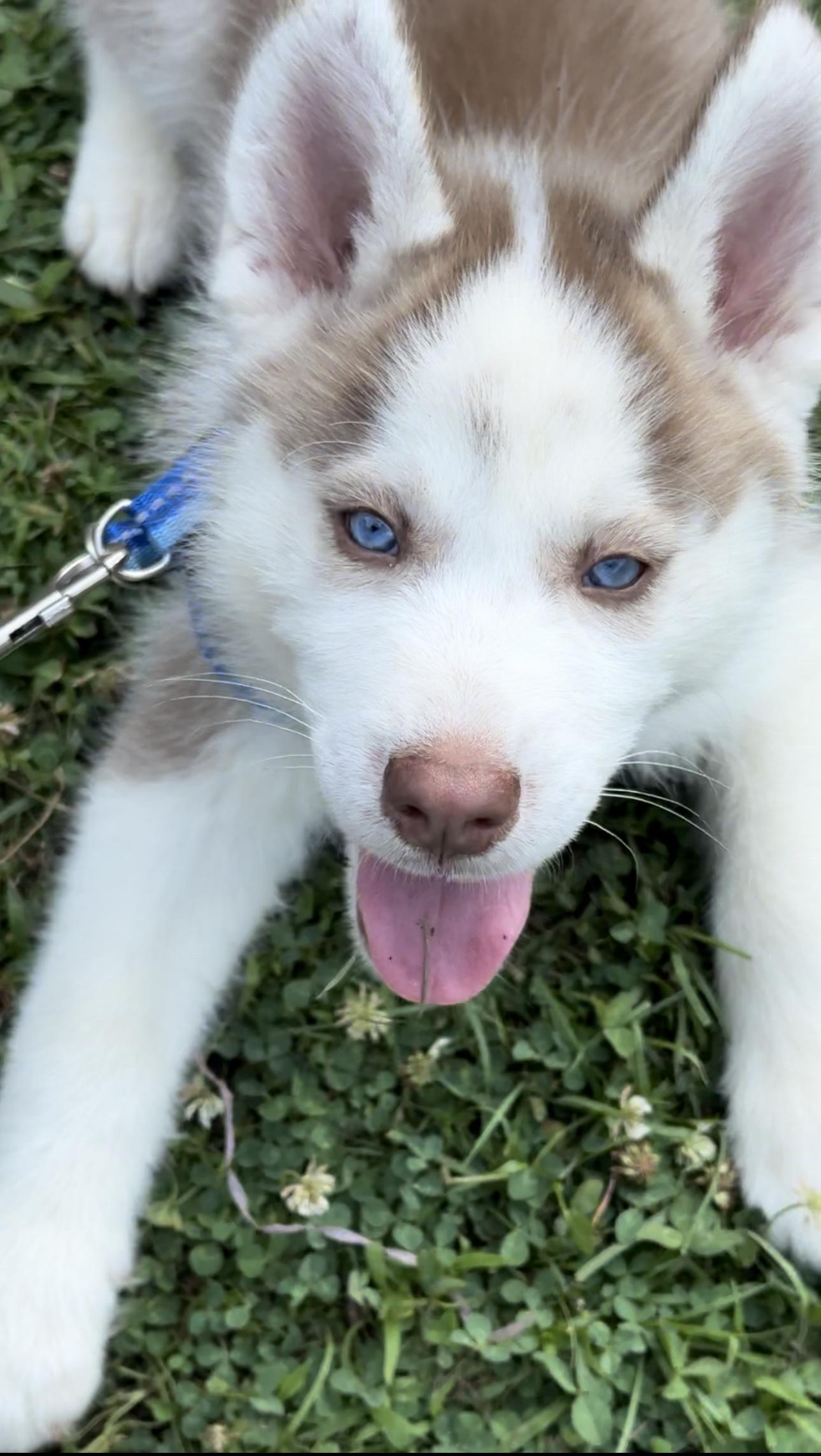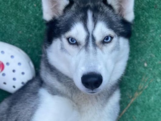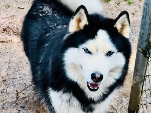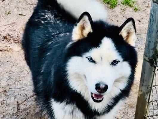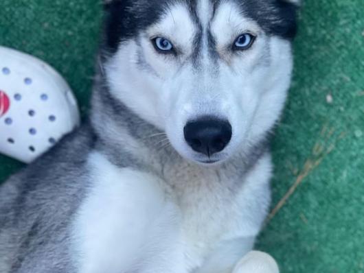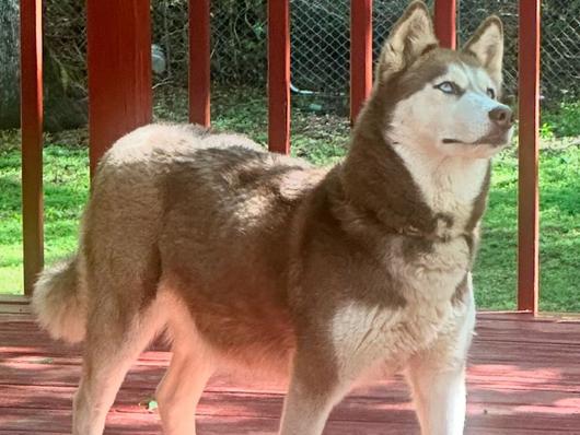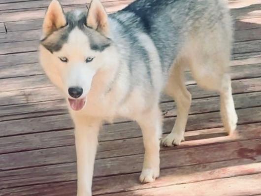 Gray, tan and white husky with a great temperament. Loves playing and laying outdoors.