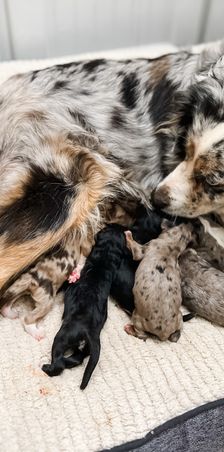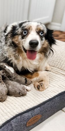 Our family has been breeding miniature Australian Shepherds for over 13 years. It started with our nanny, my mother in law, now us and my parents. We love everything about our Aussies but especially how gentle and loving they are to our little ones.
