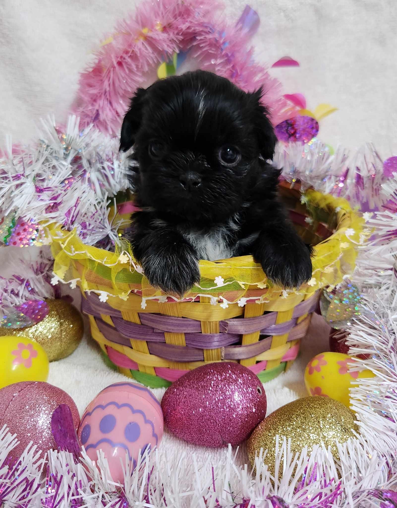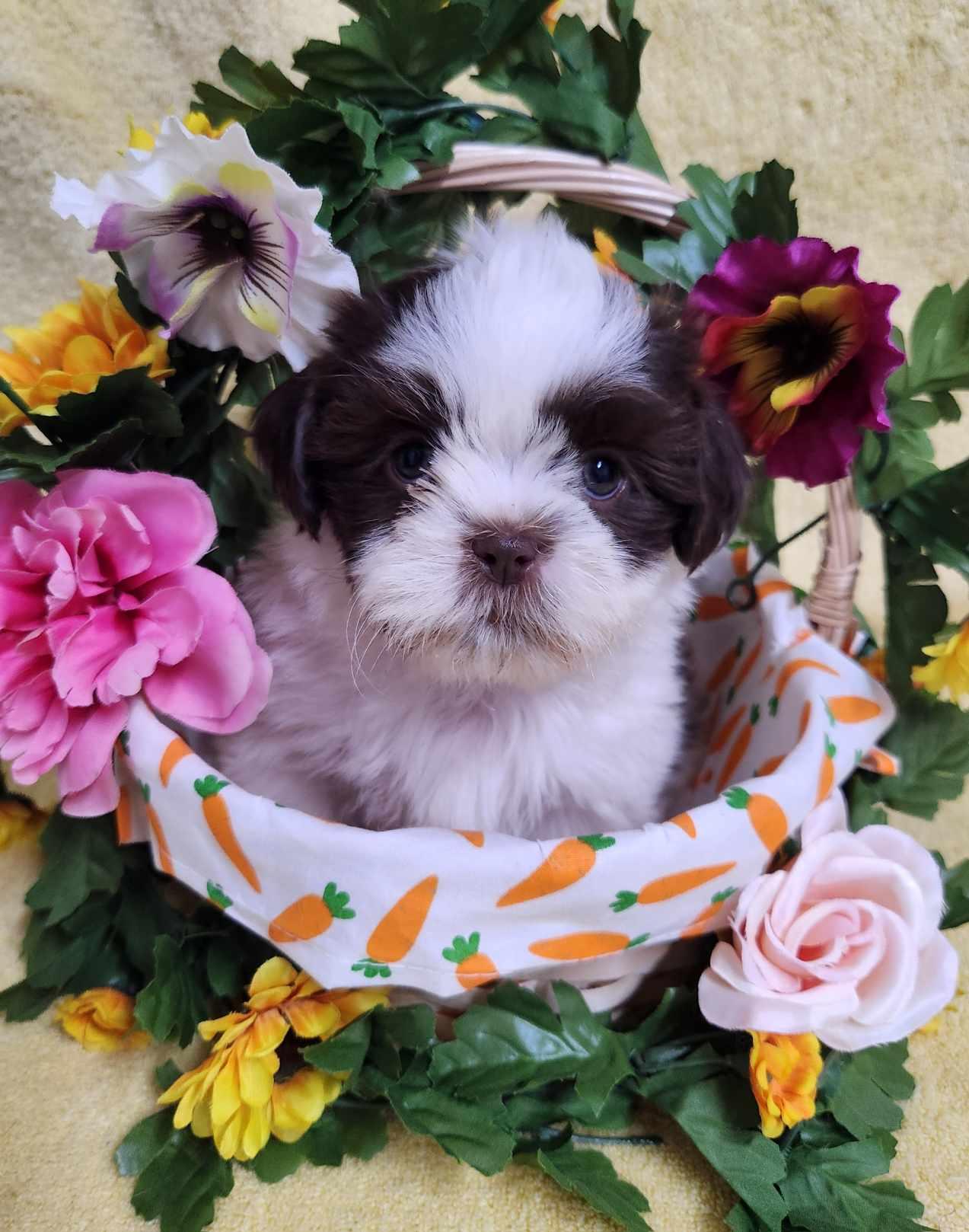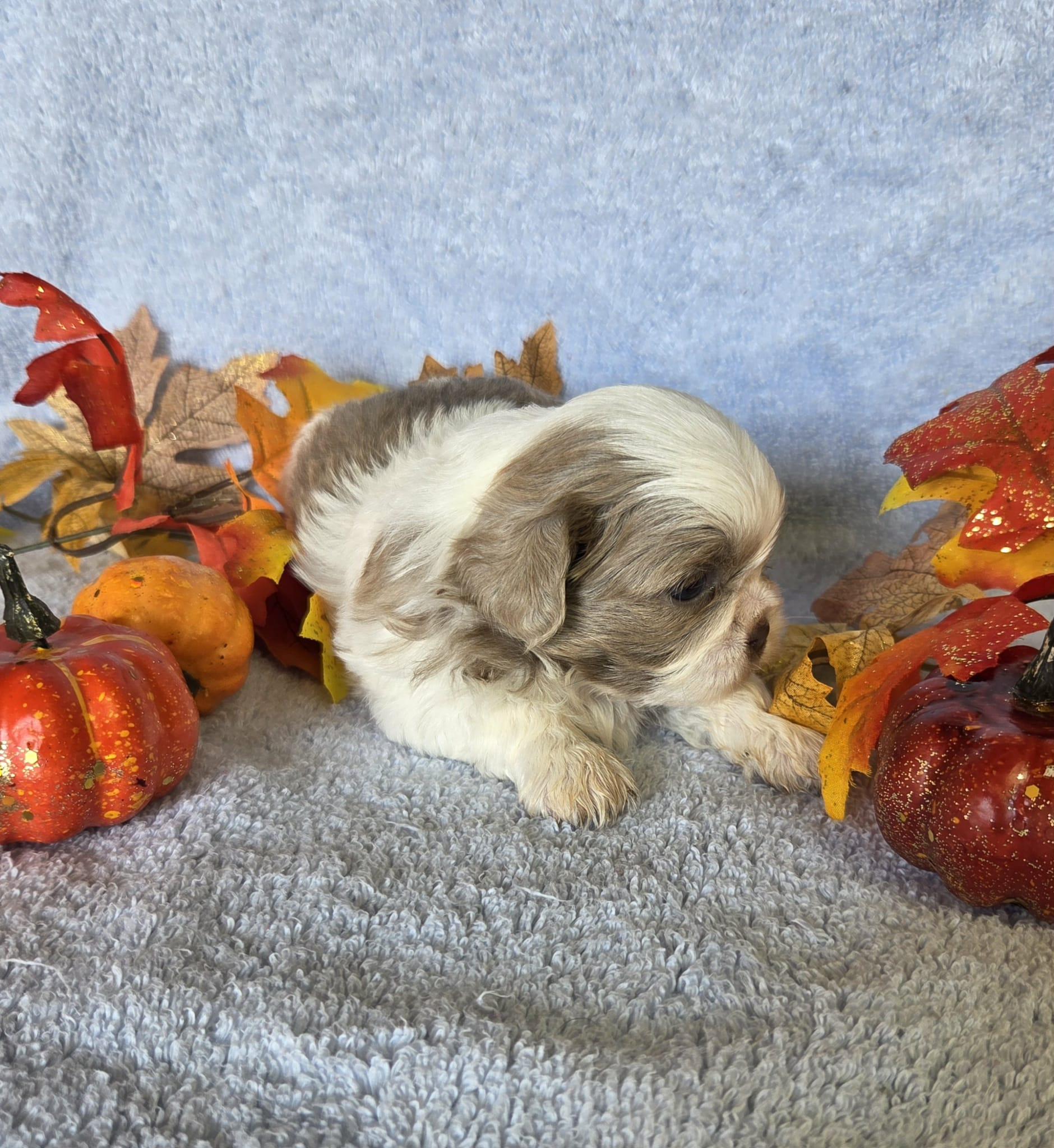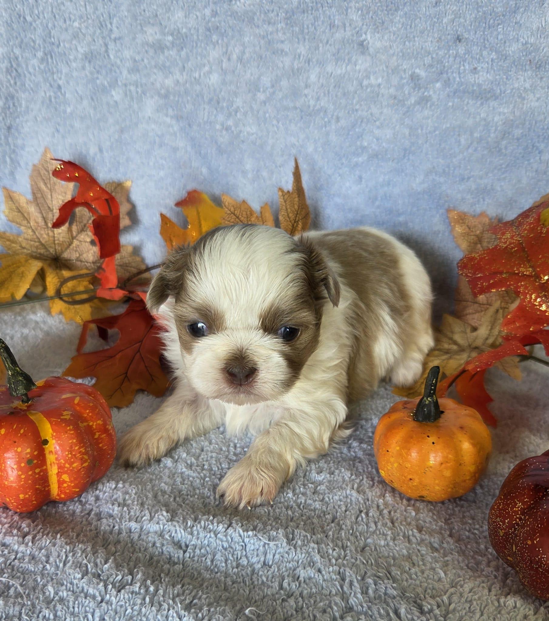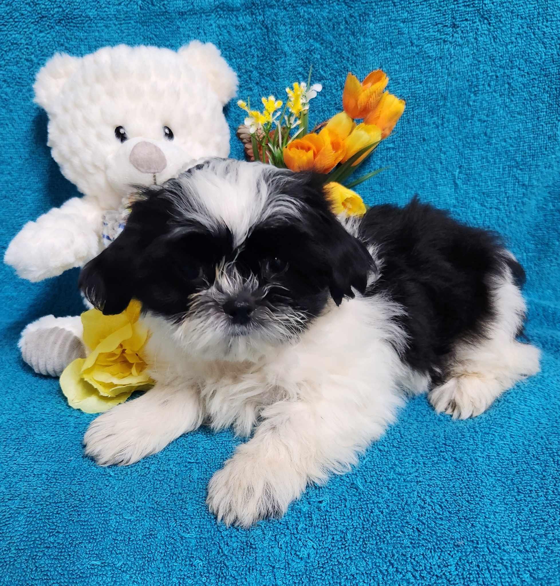 Our Shih Tzu puppies include black, liver, blue, gold, liver and white, gold and white, blue and white, and black and white. Havanese puppies include cream, chocolate, black, chocolate sable, and black and tan. Colors will vary depending on the parent dogs.